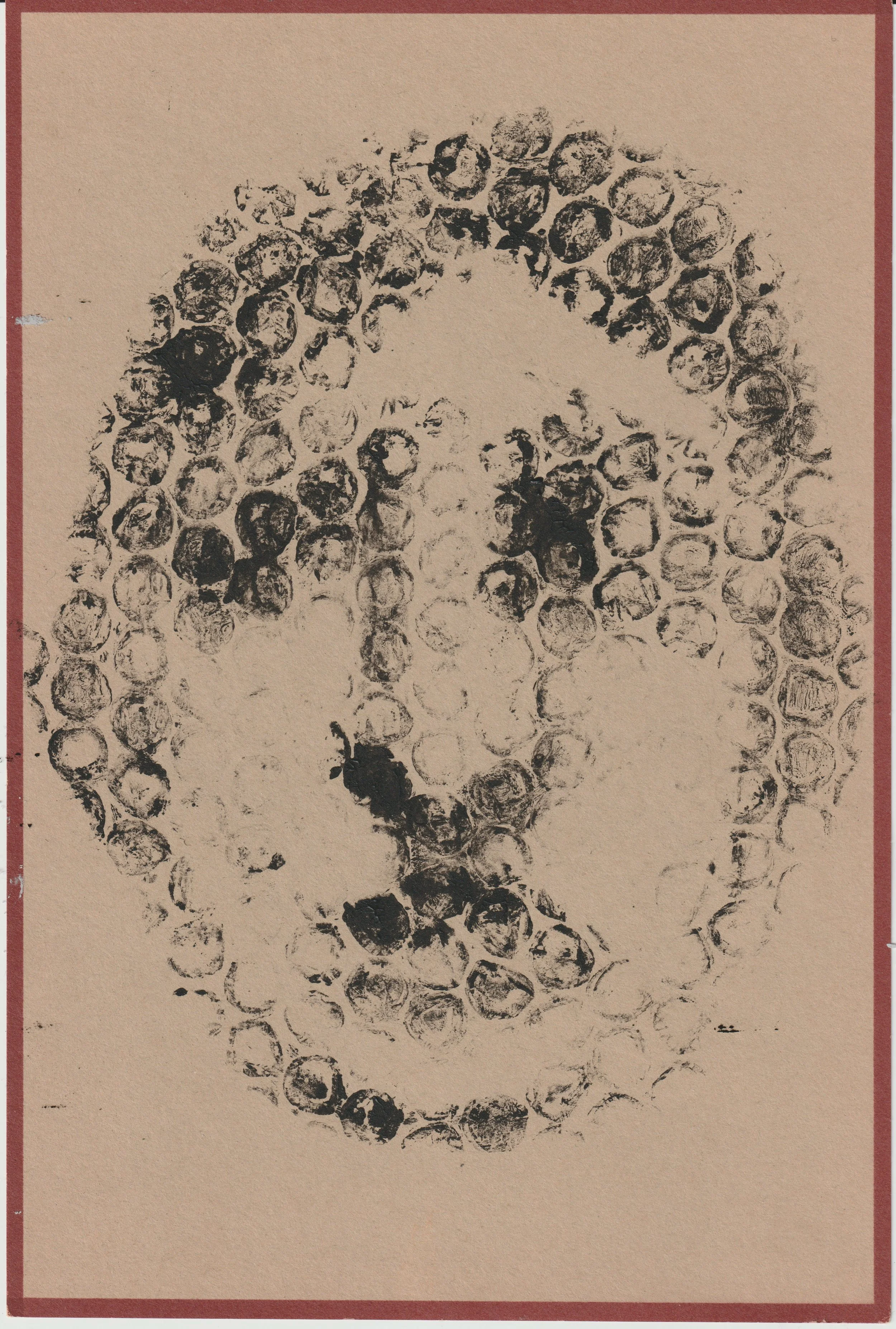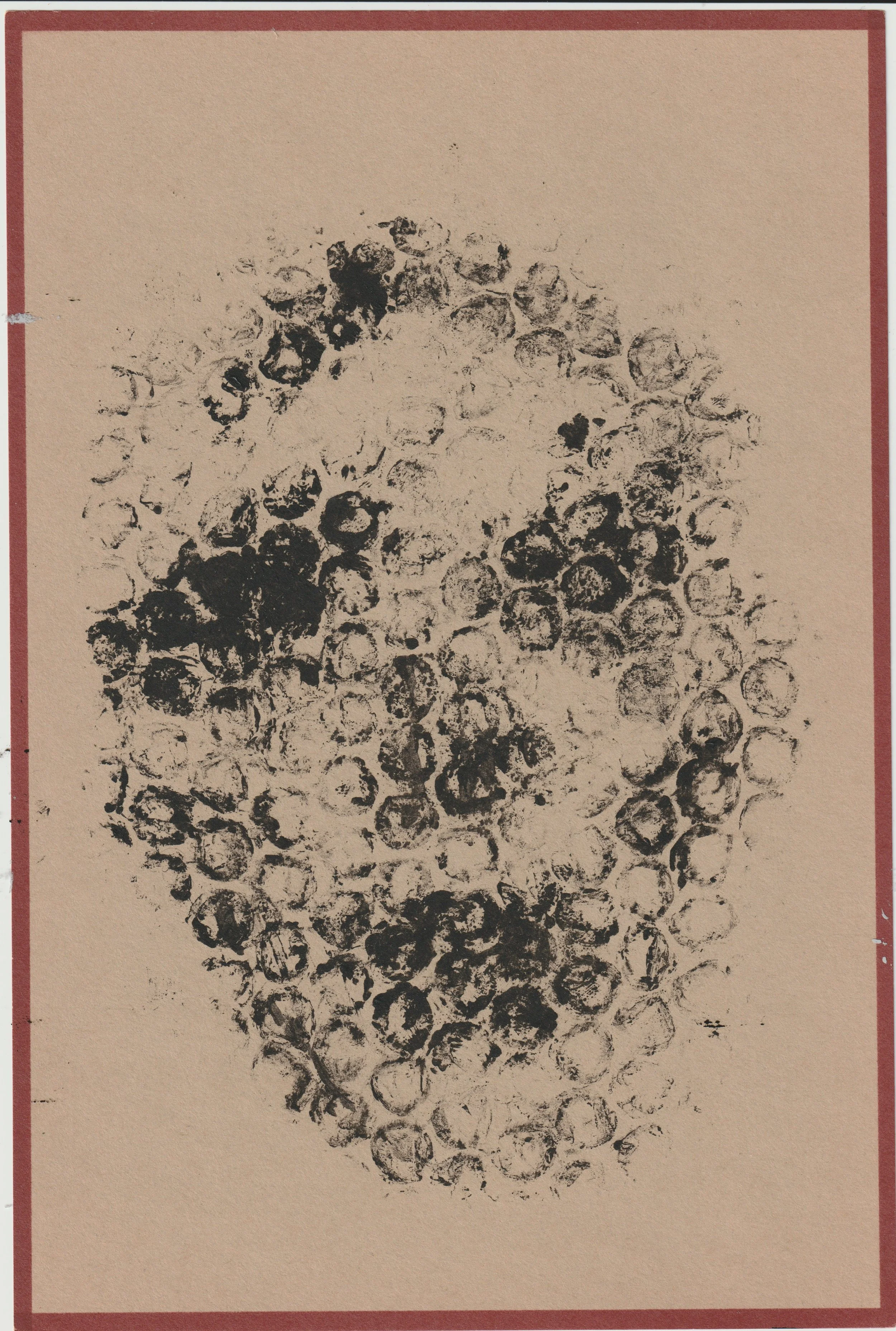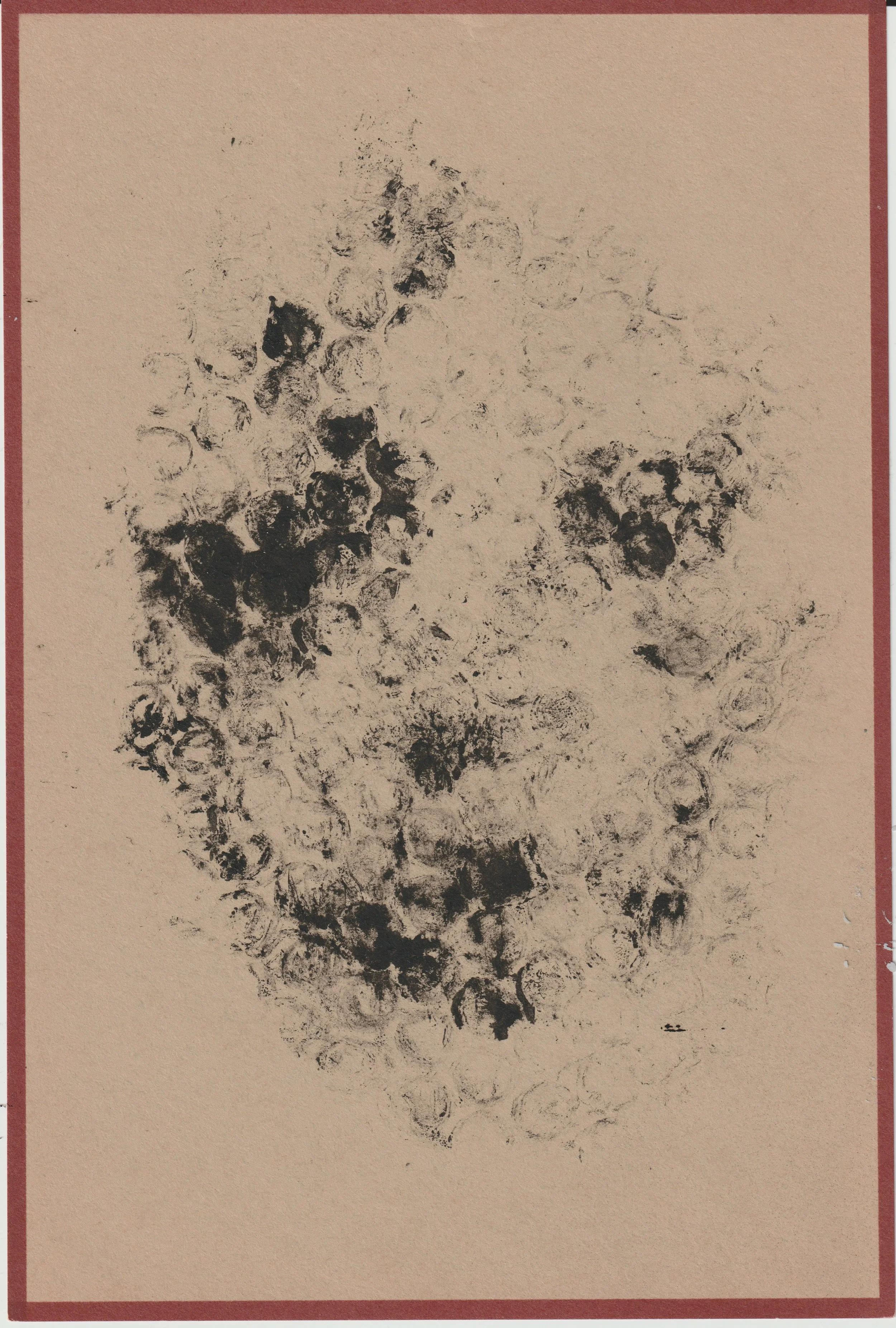 Charles, bubblewrap and ink, 9x6", 2024