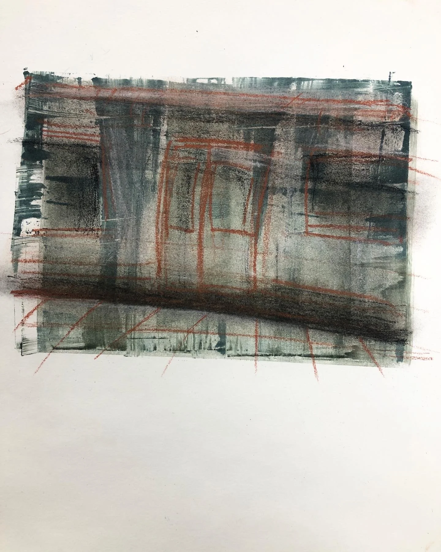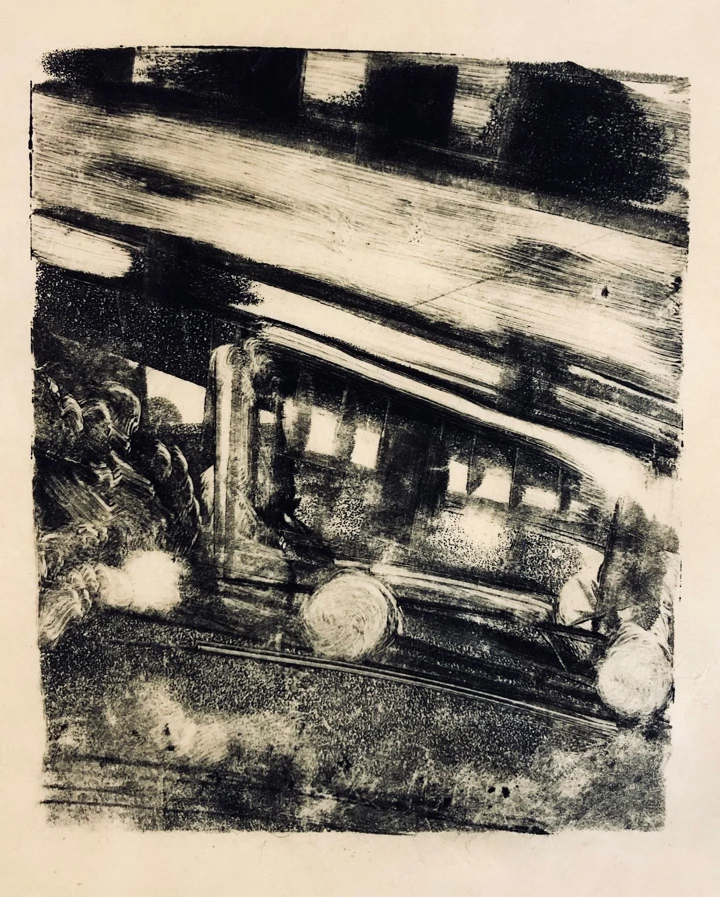 In Transit, monotype with chalk, 8x11", 2023