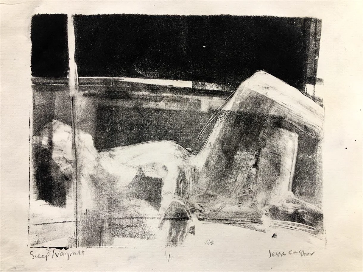 Vagrant, monotype on handmade paper, 5x7", 2023