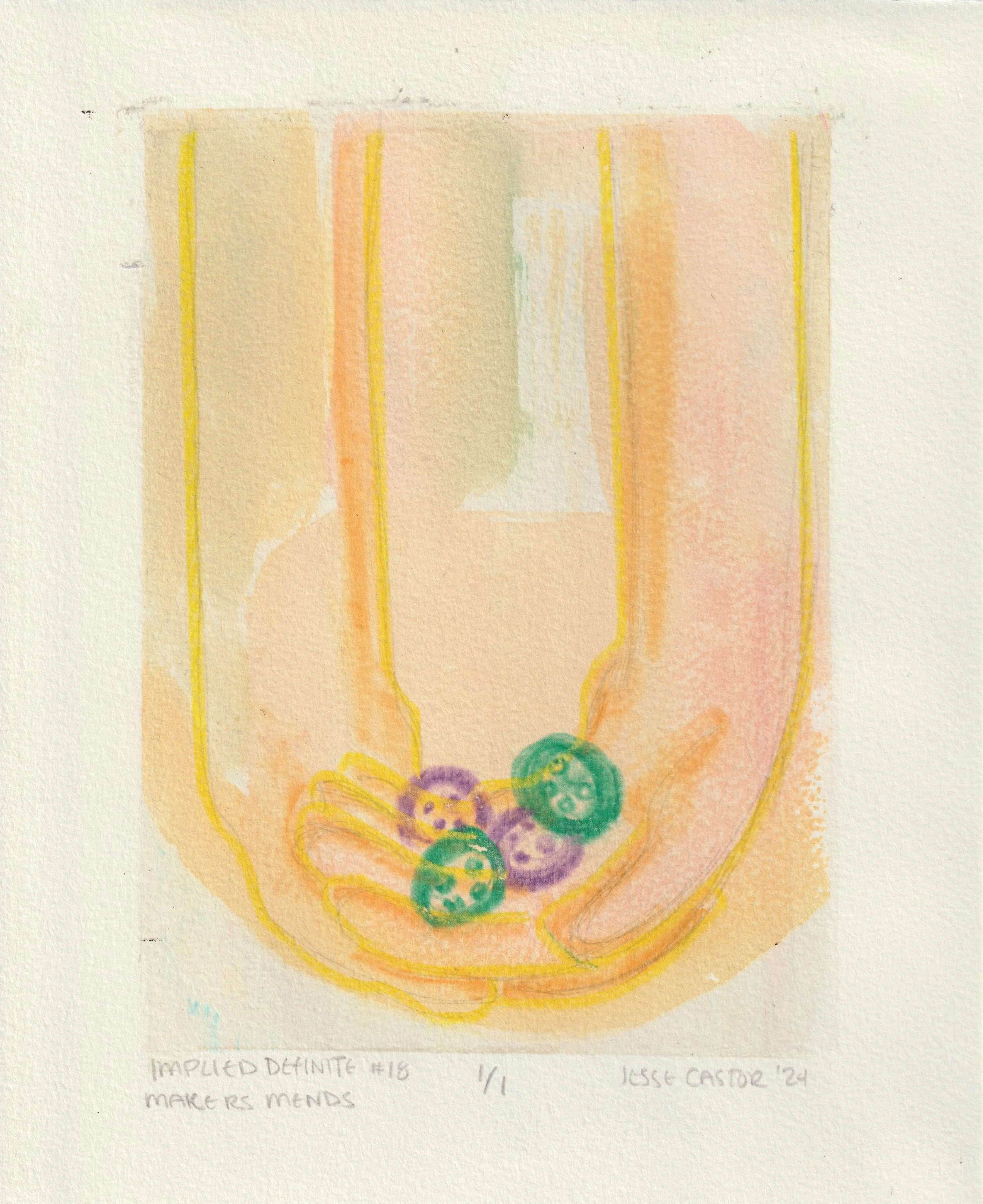 Makers Mends, screen printed monotype, 8x10", 2024