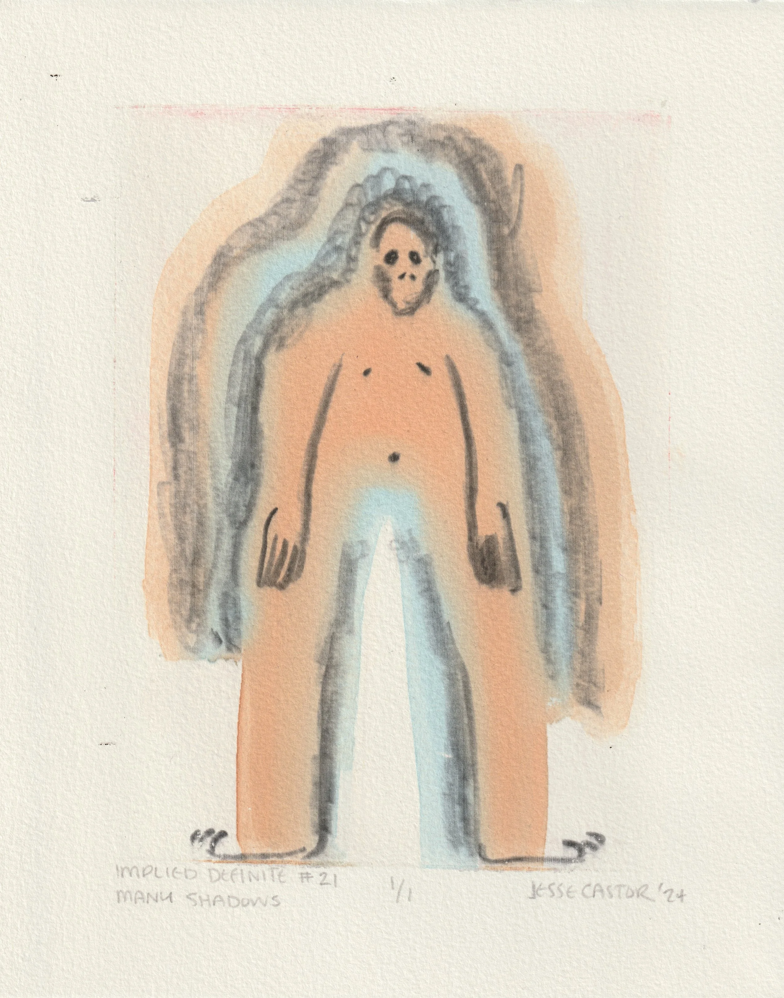 Many Shadows, screen printed monotype, 8x10", 2024